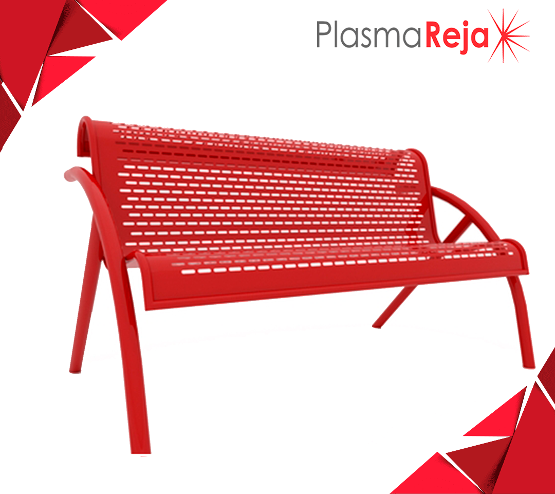 Banca metálica a base de acero al carbón en corte laser, marca "D'hierro" modelo PLS-180, con acabado en pintura electrostática en polvo horneada de alta resistencia a la intemperie, con pretratamiento de fosfato de zinc para anclar o ahogar en concreto.
