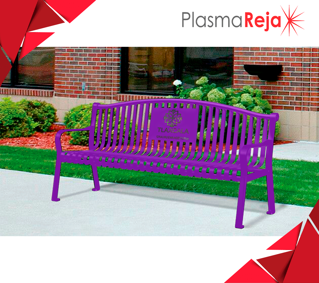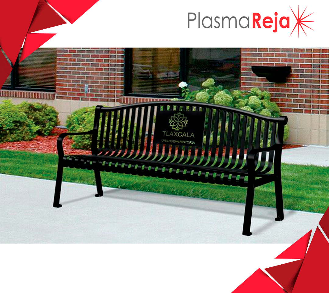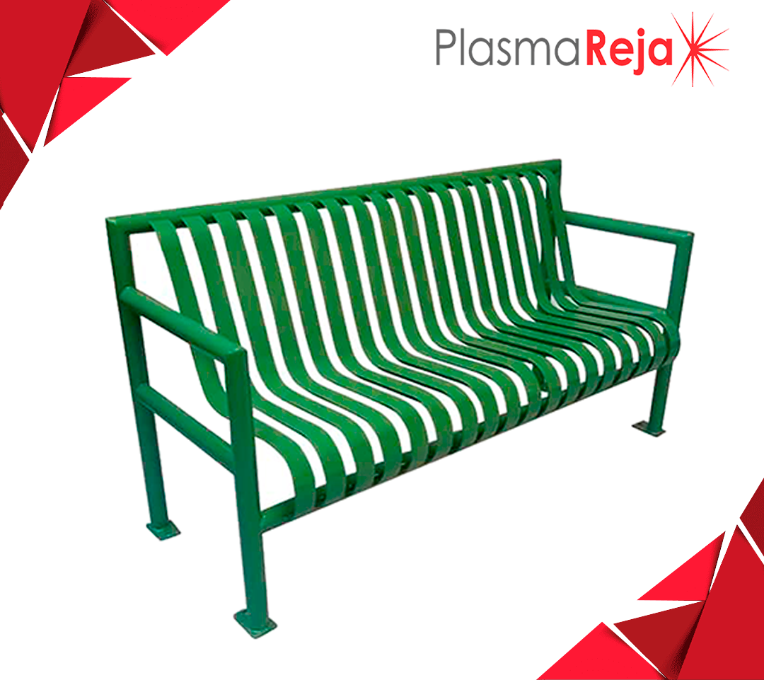 Banca metálica a base de acero al carbón en corte laser, marca "D'hierro" modelo BSD-03, con acabado en pintura electrostática en polvo horneada de alta resistencia a la intemperie, con pretratamiento de fosfato de zinc para anclar o ahogar en concreto.