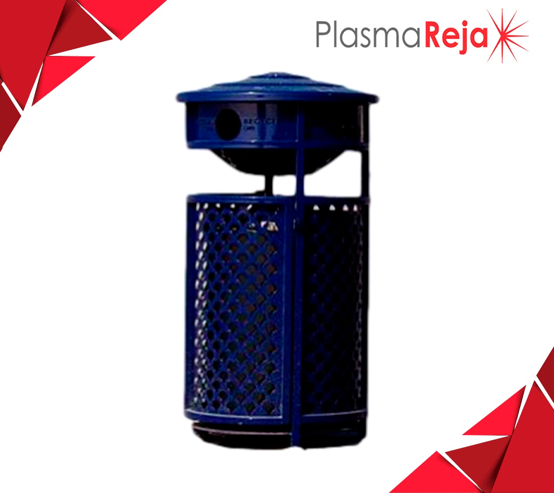 Contenedor para basura elaborado a base de lámina calibre 16 y tubo cuadrado de 1”, corte laser, con bote interno. Uso rudo con acabado en pintura electrostática horneada de alta resistencia a la intemperie, con pretratamiento de fosfato de zinc.