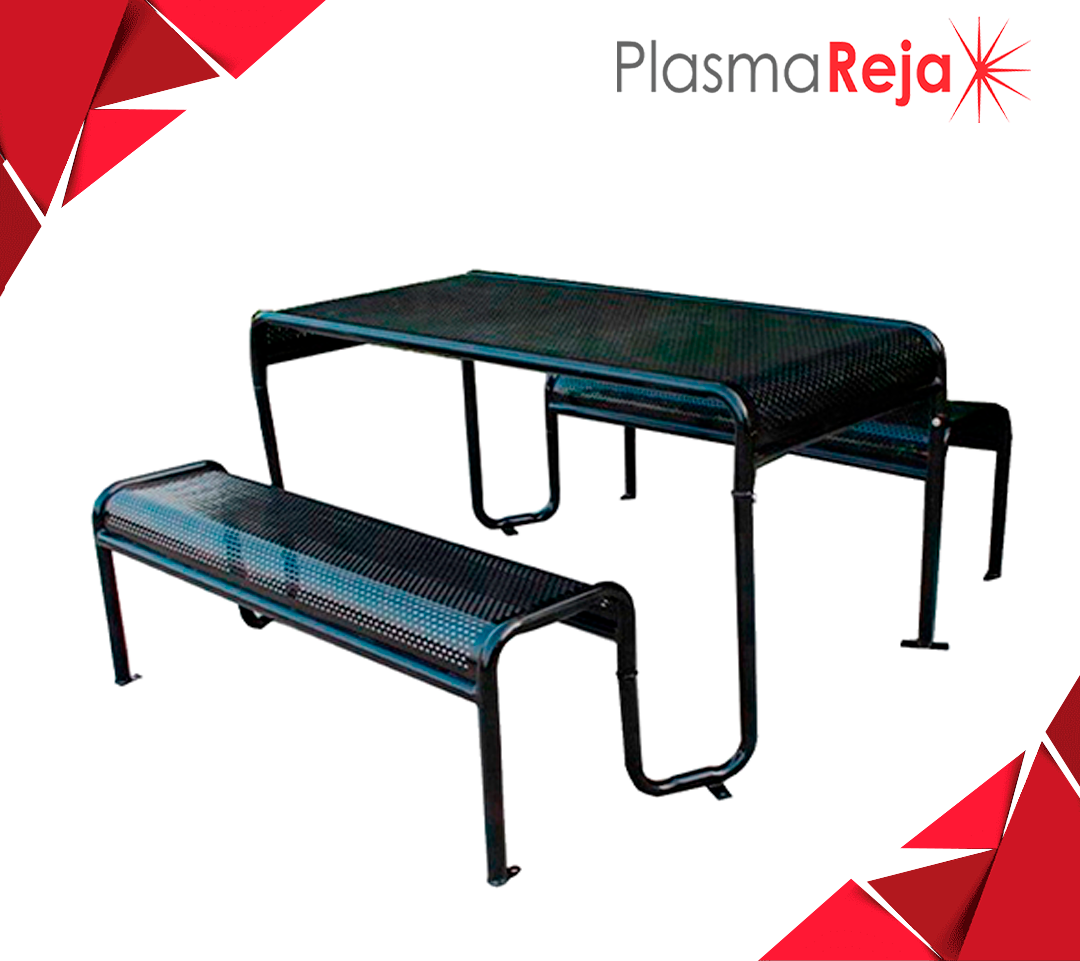 mesa de picnic marca d'hierro modelo pc-016, rectangular, con cubierta de malla y acabado en pintura en polvo horneada de alta resistencia a la intemperie, con pretratamiento de fosfato de zinc.