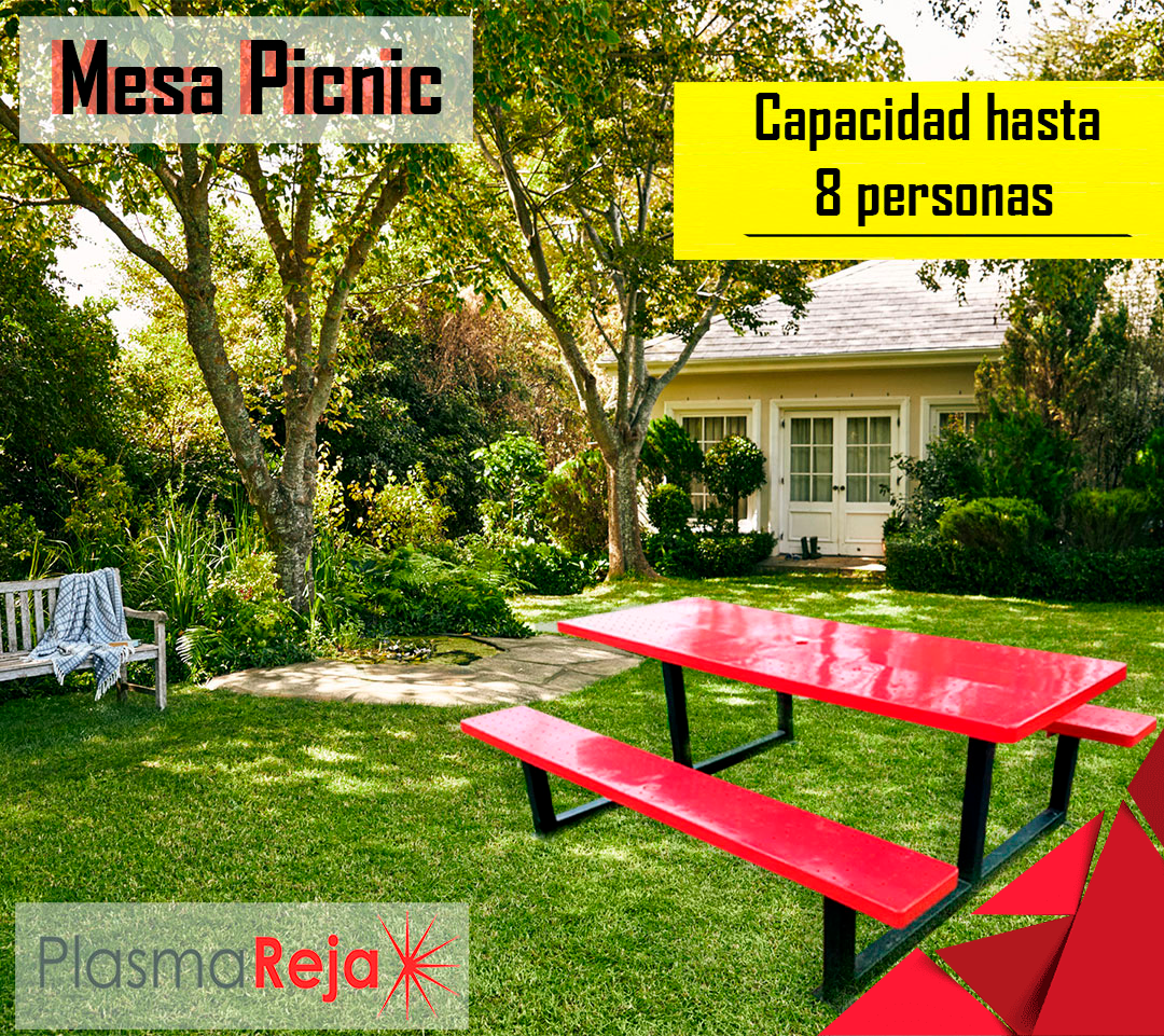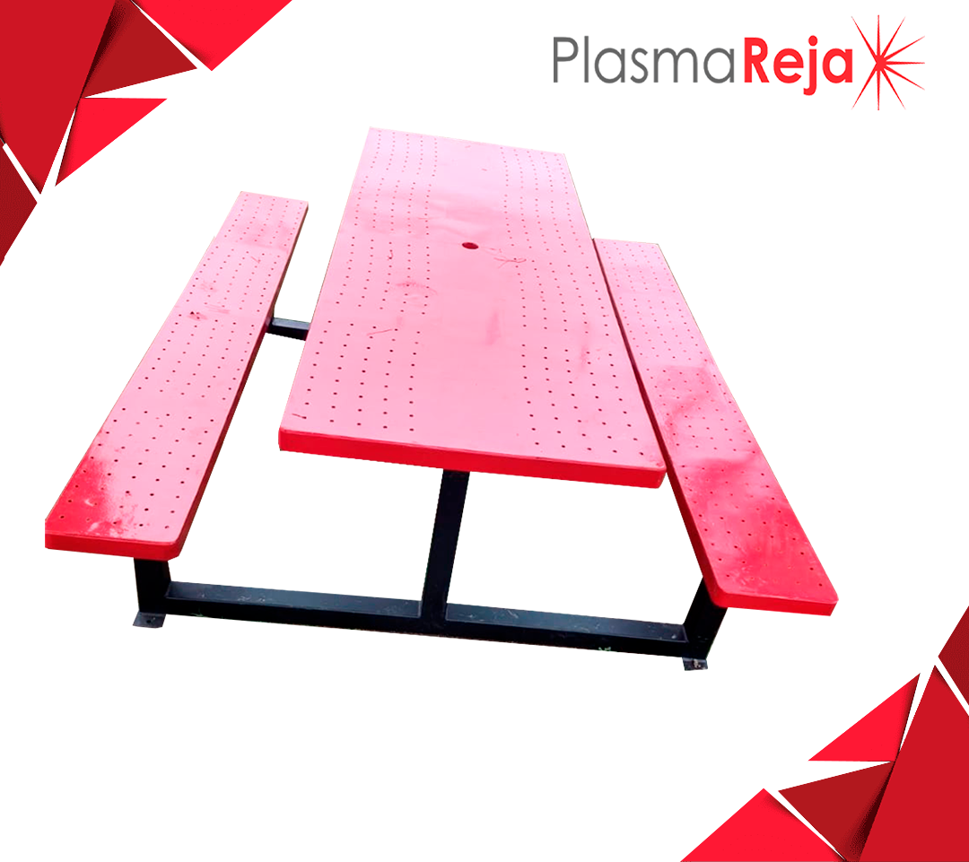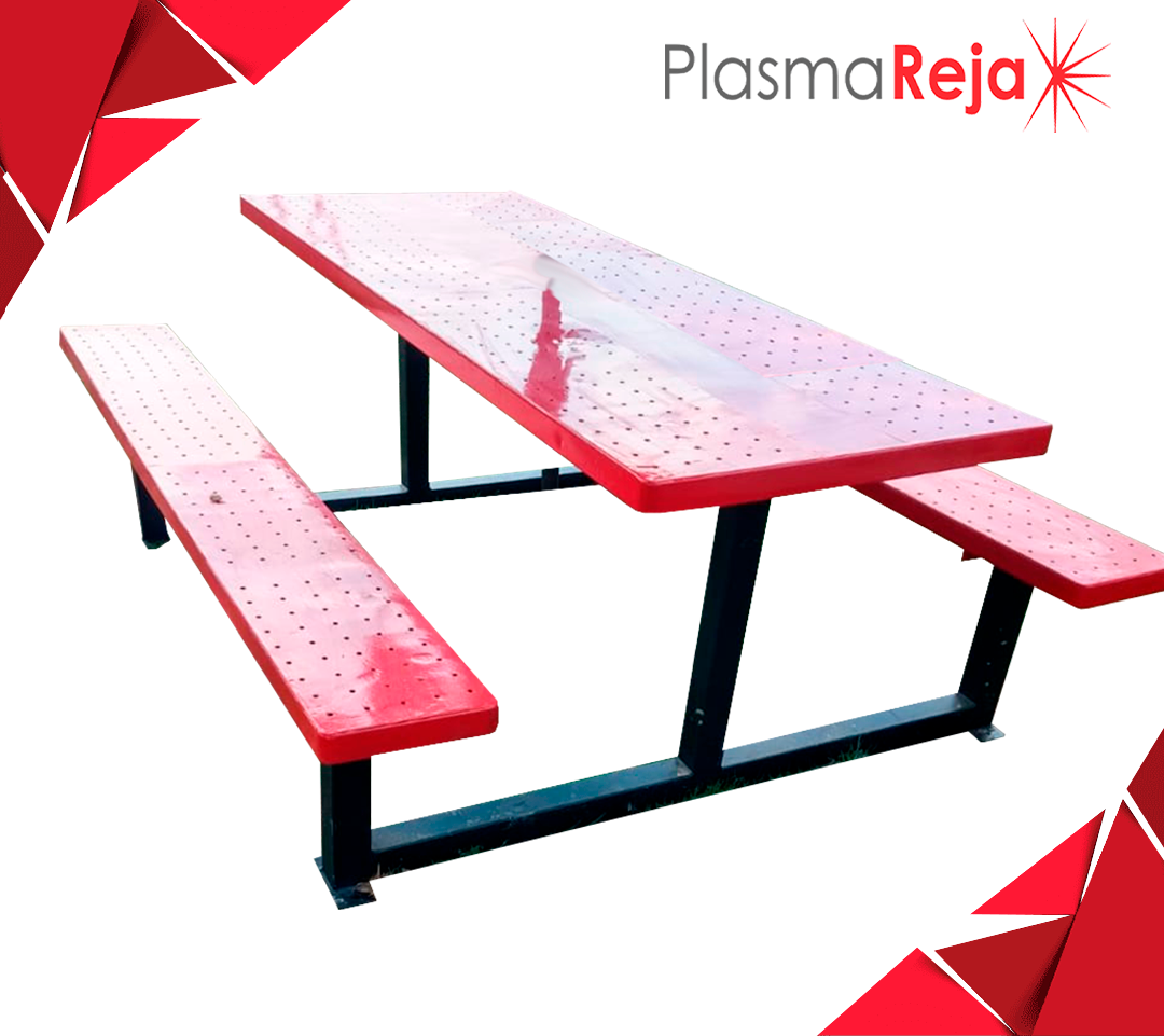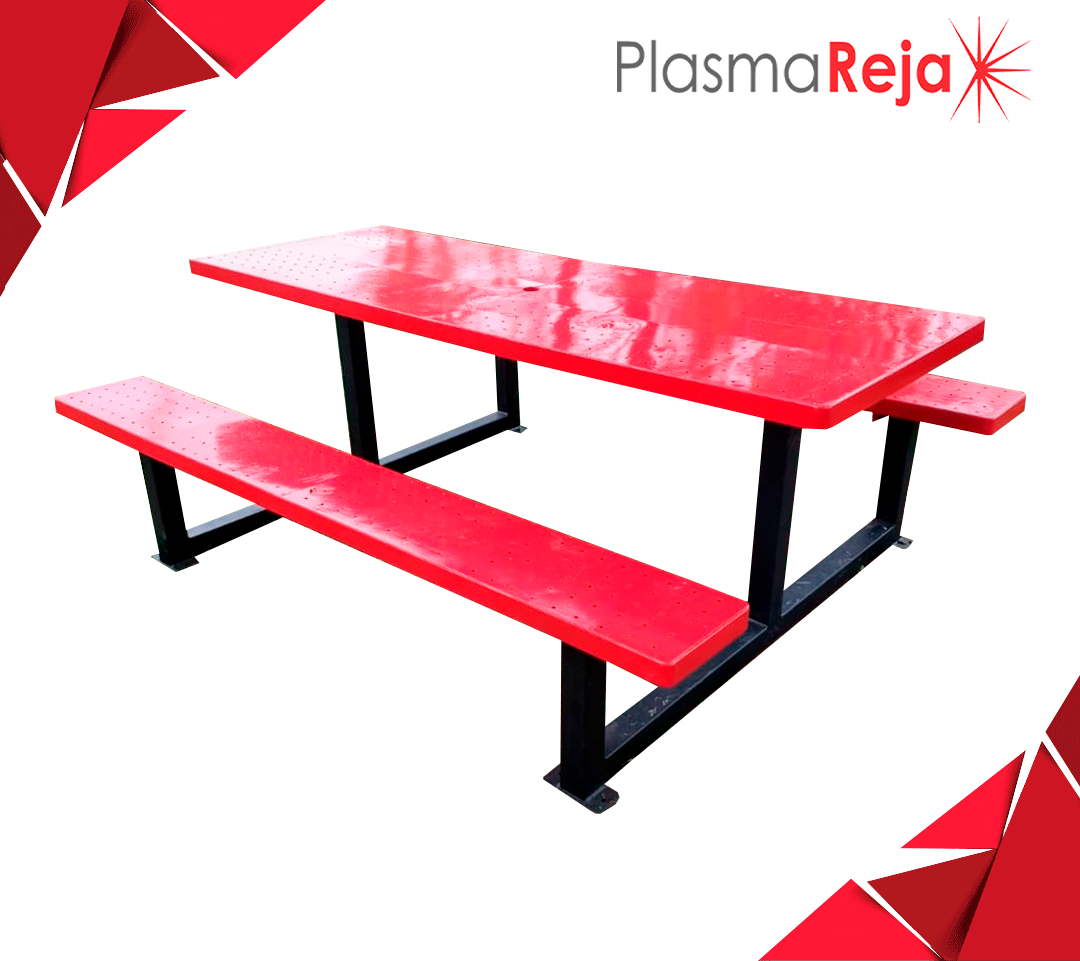mesa de picnic marca d'hierro modelo pc-011, rectangular con asientos separados, de 1.80 de largo con cubierta de malla y acabado en pintura en polvo horneada de alta resistencia a la intemperie, con pretratamiento de fosfato de zinc.